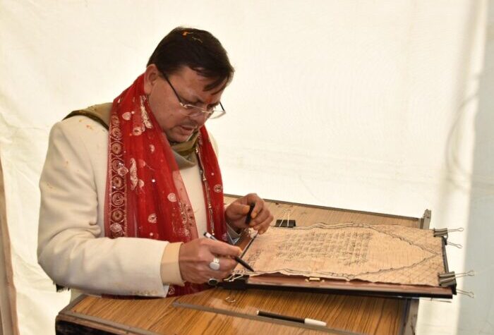 बुलंद आवाज़ न्यूज चमोली कार्यक्रम में सीएम धामी ने भोजपत्र पर कैलीग्राफी, पारंपरिक रांछ...
