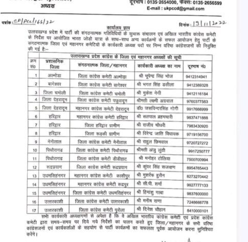 बुलंद आवाज़ न्यूज चमोली /सोनिया मिश्रा उत्तराखंड प्रदेश कांग्रेस कमेटी ने पार्टी की संगठनात्मक...