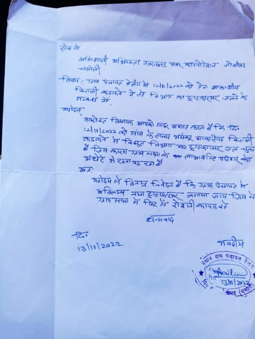 जन प्रतिनिधियों द्वारा लगातार समस्या को लेकर विद्युत विभाग से लिखित मौखिक सम्पर्क किया लेकिन वर्तमान समय मे भी ग्रामीणों की समस्या जस की तस बनी हुई है। जिससे ग्रामीणों की नाराजगी बढ़ती जा रही है।