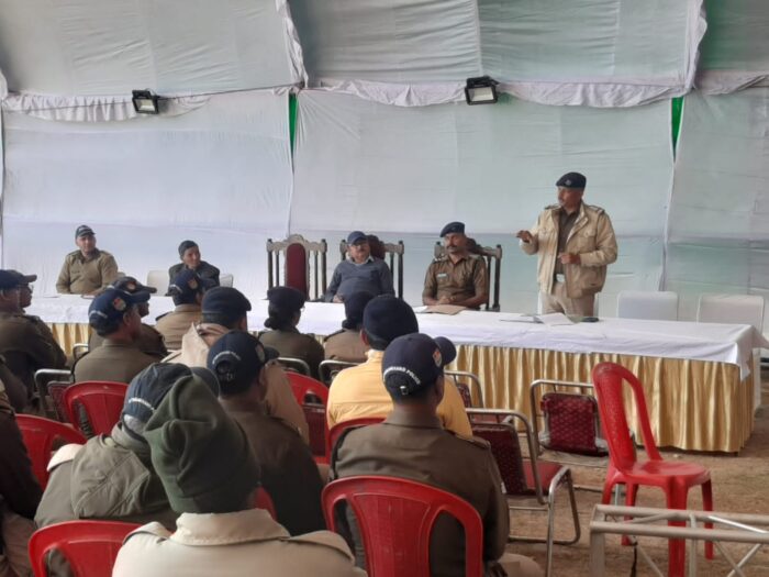 गौचर में पुलिस उपाधीक्षक कर्णप्रयाग अमित कुमार सैनी द्वारा दिनांक: 14/11/2022 से 20/11/2022 तक आयोजित होने वाले राजकीय औद्योगिक विकास एवं सांस्कृतिक गौचर मेला 2022 को सकुशल संपन्न कराये जाने हेतु मेले में नियुक्त समस्त पुलिस बल की ब्रीफिंग ली गयी। ब्रीफिंग के दौरान पुलिस उपाधीक्षक द्वारा पुलिस बल को आवश्यक दिशा-निर्देश दिये गये।