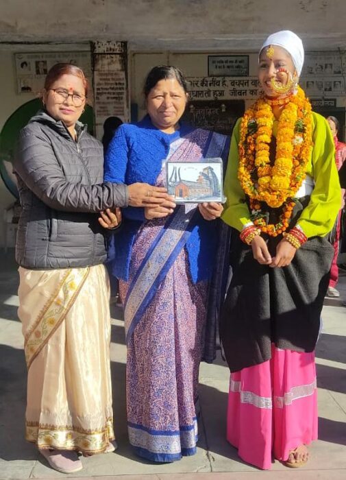 संजना के साथ कला महोत्सव में प्रतिभाग करवाने के लिए अध्यापिका शशि नेगी प्रवक्ता इतिहास एवं श्रद्धा रावत सहायक अध्यापिका संगीत को भी सम्मानित किया गया।