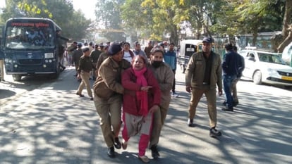 विधानसभा के बाहर धरने पर बैठे बर्खास्त कर्मचारियों की पुलिस से तीखी झड़प हो गई। पुलिस कर्मचारियों को यहां धरने से जबरन उठाने लगी तभी कर्मचारी विरोध करने लगे। इस दौरान पुलिस ने दो महिला कर्मचारियों को गिरफ्तार कर लिया।