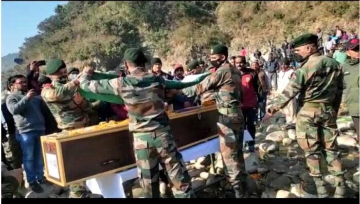 शहीद की अंतिम यात्रा में रुद्रप्रयाग के विधायक भरत सिंह चौधरी, जिला पंचायत अध्यक्ष अमरदेई शाह, जिला पंचायत उपाध्यक्ष सुमन तिवारी, क्षेत्र पंचायत सदस्य सुमन नेगी, भाजपा जिला अध्यक्ष महावीर सिंह पवार व वार्ड सभासद सुरेंद्र रावत समेत बड़ी संख्या में क्षेत्रीय लोग और सैनिक टुकड़ी मौजूद रही.