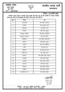 भारतीय जनता पार्टी के प्रदेश अध्यक्ष महेंद्र भट्ट ने संगठनात्मक 19 जिलों के जिलाध्यक्षों के नाम की घोषणा कर दी है. जिसमें की चमोली से महावीर रावत जिलाध्यक्ष भारतीय जनता युवा मोर्चा चमोली, प्रदीप रावत जिलाध्यक्ष रुद्रप्रयाग समेत तमाम नए नामों की घोषणा हुई है.