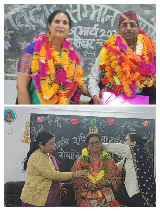 गौचर के अध्यापक/अध्यापिका चंद्र शेखर चमोला, शशिकांता रावत का हुआ रिटायरमेंट, छात्र छात्राओं की आखें हुई नम