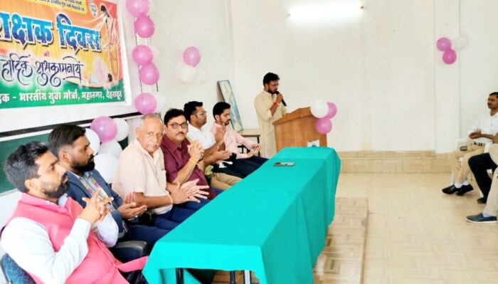 भारतीय जनता युवा मोर्चा के महानगर देहरादून अध्यक्ष देवेंद्र बिष्ट के नेतृत्व में उत्तरांचल आयुर्वेदिक कॉलेज में शिक्षक दिवस के अवसर पर शिक्षक सम्मान समारोह का आयोजन किया गया। जिसमें कॉलेज व हॉस्पिटल के समस्त प्रोफेसर को स्मृति भेंट कर सम्मानित किया गया। प्रदेश महामन्त्री विपुल मैन्दोली ने शिक्षक व बढ़ते भारत के विषय पर छात्र- छात्राओं व शिक्षकों के मध्य अपने विचार रखें। प्रदेश उपाध्यक्ष डॉ नीरज पंत ने बताया कि एक श्रेष्ठ समाज के निर्माण में शिक्षक की भूमिका पर प्रकाश डाला। कार्यक्रम का संचालन प्रदेश सयोंजक मनीष सैनी ने किया।