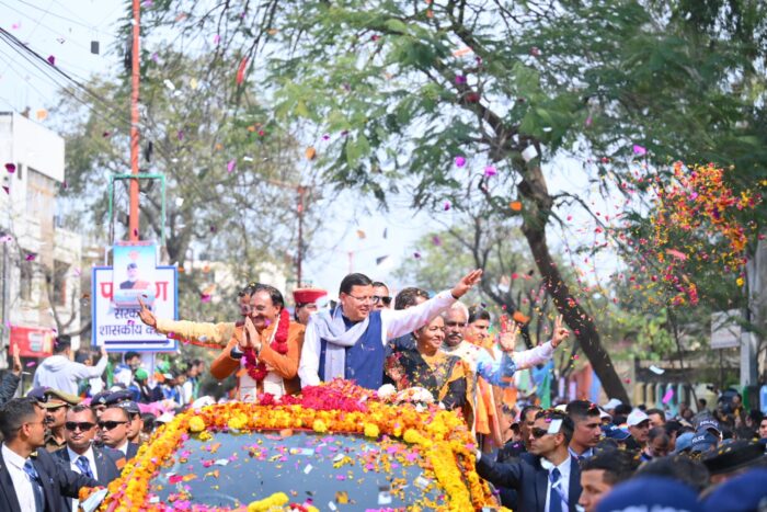 मुख्यमंत्री पुष्कर सिंह धामी ने नारी शक्ति महोत्सव कार्यक्रम से पहले देवपुरा चौक से ऋषिकुल मैदान तक आयोजित भव्य रोड शो प्रतिभाग कर मातृ शक्ति और विशाल जन समूह का अभिनंदन स्वीकार किया।