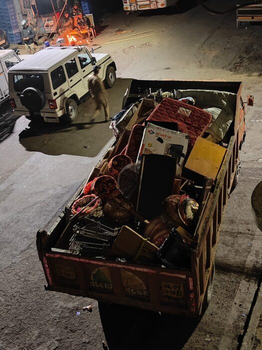 हल्द्वानी के बनभूलपुरा दंगे में वांछित अब्दुल मलिक और उसके बेटे अब्दुल मोईद के बनभूलपुरा स्थित घर की कुर्की की जा रहा है। मौके पर हरबंस सिंह एसपी सिटी हल्द्वानी, संगीता सीओ लालकुआं, सचिन तहसीलदार हल्द्वानी, डी०आर०वर्मा प्रभारी निरीक्षक लालकुआं, नंदन सिंह रावत, थानाध्यक्ष कालाढूंगी समेत पुलिस तथा प्रशासन की टीमें मौजूद रही.