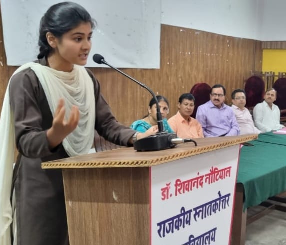 भाषण प्रतियोगिता में प्रथम स्थान प्रज्ञा बी०ए० पंचम सेमेस्टर,द्वितीय स्थान अंशुल रावत बी० ए० पंचम सेमेस्टर एवं तृतीय स्थान प्रियंका तृतीय सेमेस्टर ने प्राप्त किया। निबंध प्रतियोगिता में प्रथम स्थान हिना बी० एस०सी० पंचम सेमेस्टर, द्वितीय स्थान प्रज्ञा, बी०ए० पंचम सेमेस्टर तृतीय स्थान प्रियंका बी०ए० पंचम सेमेस्टर ने प्राप्त किया।
