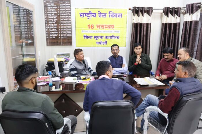 राष्ट्रीय प्रेस दिवस के मौके पर 16 नवंबर को जिला सूचना कार्यालय चमोली में ‘‘चेंजिंग नेचर ऑफ प्रेस’’ विषय पर संगोष्ठी आयोजित की गई। जिसमें मीडिया प्रतिनिधियों एवं गणमान्य नागरिक ने प्रेस की महत्ता पर प्रकाश डाला। इस दौरान मीडिया में भ्रामक खबरों के प्रकाशन-प्रसारण से होने वाली समस्याओं को भी उजागर किया गया।