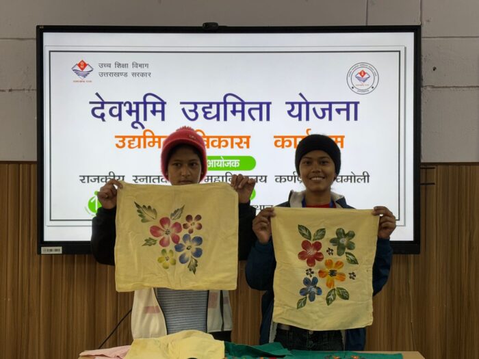 डॉ. शिवानंद नौटियाल राजकीय स्नातकोत्तर महाविद्यालय, कर्णप्रयाग में देवभूमि उद्यमिता विकास योजना के अंतर्गत चल रहे उद्यमिता विकास कार्यक्रम के चौथे दिन विद्यार्थियों ने अपने स्वनिर्मित उत्पादों का प्रदर्शन किया। इस अवसर पर डॉ. हरीश बहुगुणा ने स्थानीय संसाधनों के उपयोग से स्वरोजगार के अवसरों पर प्रकाश डाला।