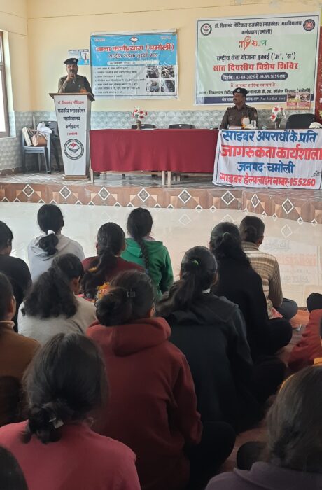 डॉ. शिवानंद नौटियाल राजकीय स्नातकोत्तर महाविद्यालय, कर्णप्रयाग(चमोली) द्वारा बी.एड. कॉलेज जिलासू में आयोजित सात दिवसीय राष्ट्रीय सेवा योजना (एनएसएस) विशेष शिविर के दूसरे दिन साइबर अपराध और सड़क सुरक्षा विषय पर बौद्धिक सत्र का आयोजन किया गया ।