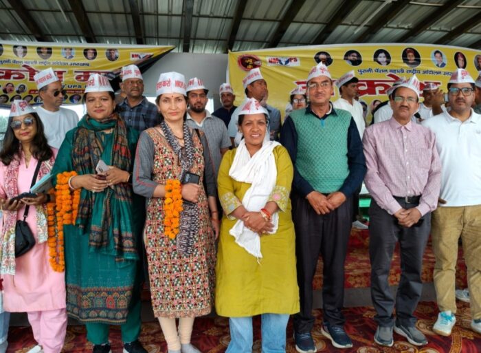 एनएमओपीएस (नेशनल मूवमेंट फॉर ओल्ड पेंशन स्कीम) से जुड़े कर्मचारी संगठनों और शिक्षकों ने राजकीय इंटर कॉलेज के खेल मैदान में गुरुवार को विशाल जनसभा का आयोजन किया। जनसभा में एनएमओपीएस के प्रदेश अध्यक्ष जीतमणि पैन्यूली ने कहा कि सरकार लगातार सांसदों, विधायकों व पूर्व विधायकों के वेतन, पेंशन और भत्तों में बढ़ोतरी कर रही है और कर्मचारियों को पेंशन देने से सरकार पर आर्थिक बोझ बढ़ रहा है। कहा कि राजस्थान, हिमाचल और अन्य राज्यों में पुरानी पेंशन बहाल हो चुकी है लेकिन उत्तराखंड सरकार मांग पूरी नहीं कर रही है।