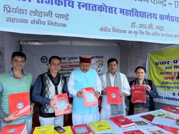 73 वें औद्योगिक विकास एंव सांस्कृतिक गौचर मेले में उत्तराखंड मुक्त विश्वविद्यालय के क्षेत्रीय अध्ययन केंद्र कर्णप्रयाग द्वारा उत्तराखंड मुक्त विश्वविद्यालय एंव श्रीदेव सुमन उत्तराखंड विश्वविद्यालय के स्नातक एंव स्नातकोत्तर कक्षाओं की पुस्तकों स्टाल लगाकर निशुल्क वितरण किया जा रहा है। प्रथम दिवस पर बडी संख्या स्थानीय छात्र एंव छात्राओ अभिभावक द्वारा स्वयं के लिए एंव अपने पाल्यों के लिए पुस्तके प्राप्त की जा रही है।